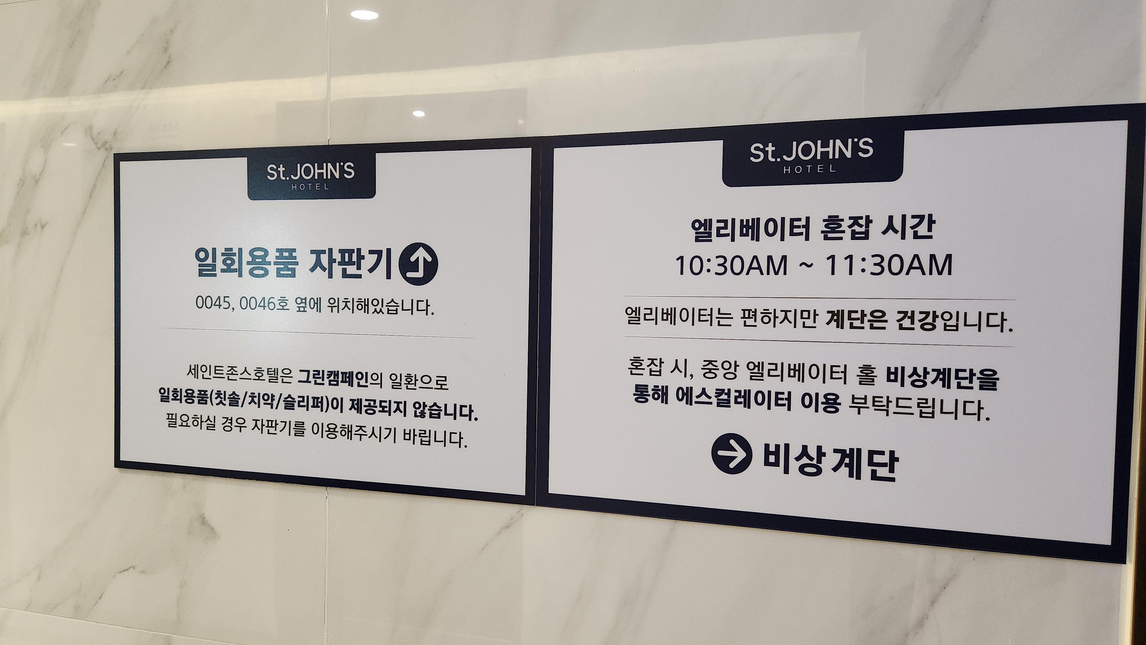 그리고 국내는 2023년 9월부터 어메니티 제공 제한이 되어 대부분의 호텔이 대용량 디스펜서로 제공하고 있으며, 일회용품(칫솔/치약/슬리퍼) 등이 필요하시면 호텔 곳곳에 위치한 일회용품 자판기를 활용하시면 될 것 같습니다.