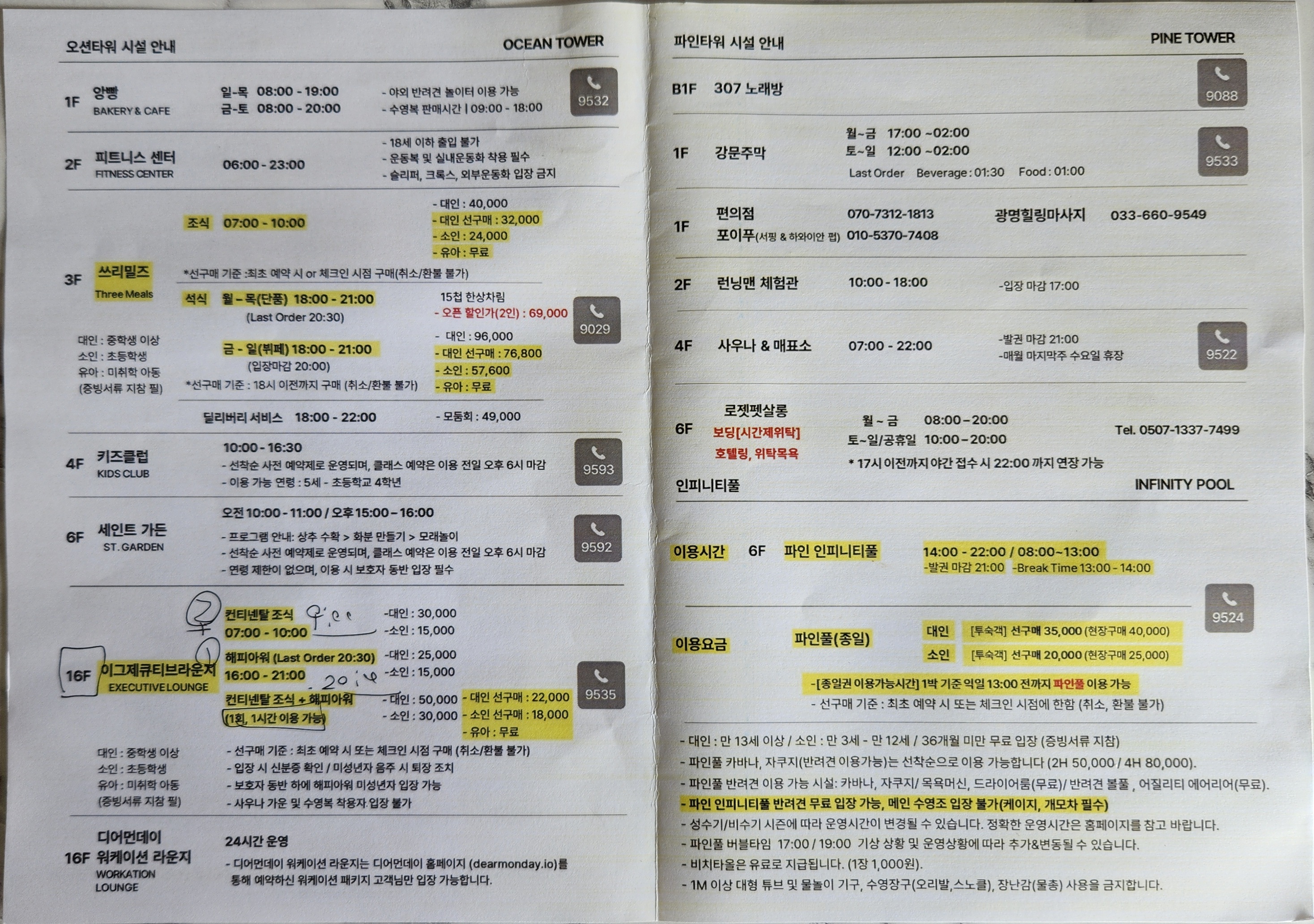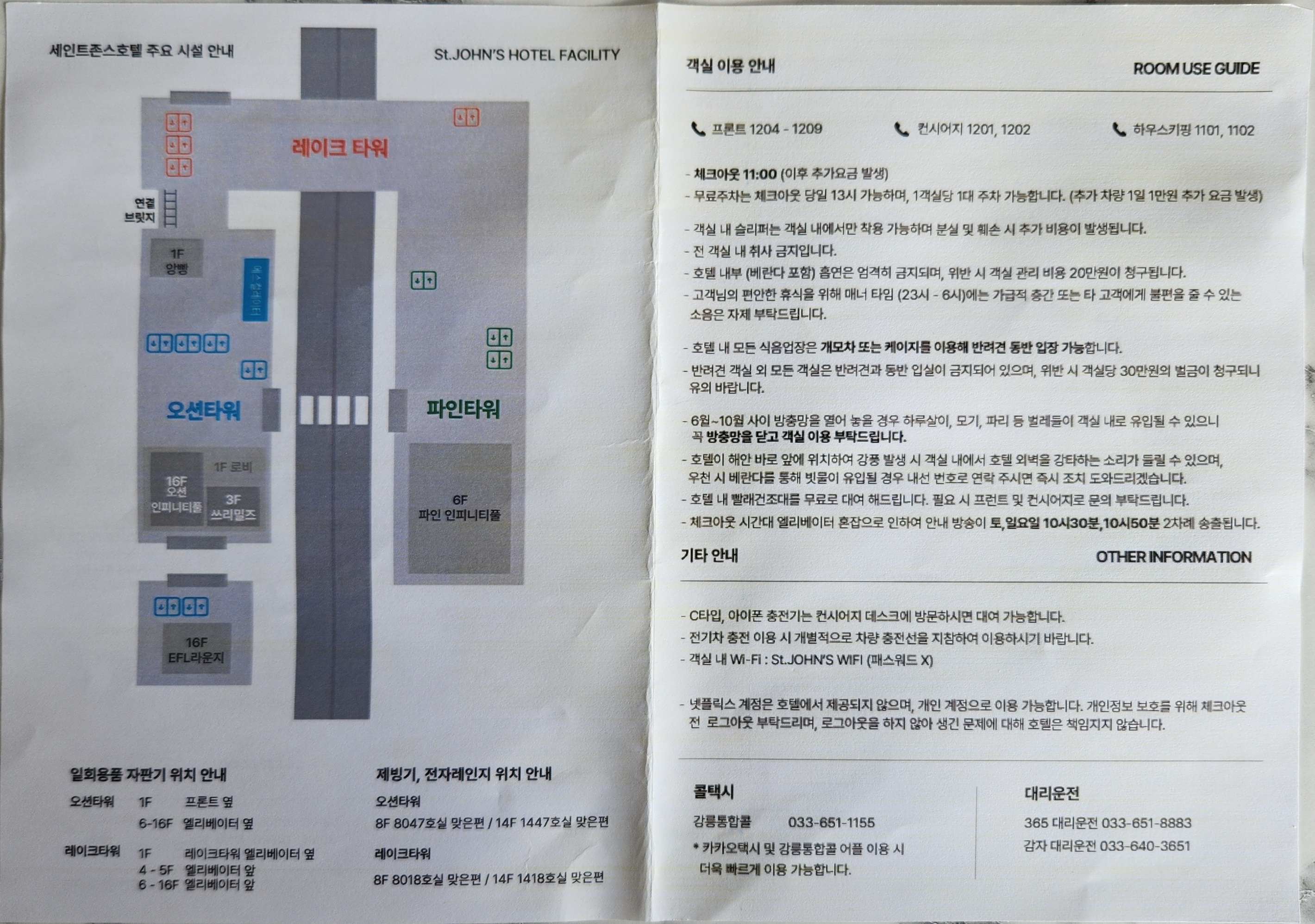 세인트존스호텔 주요 시설 안내 및 오션타워 및 파인타워의 상세 시설 안내의 경우 아래 사진을 참고하시면 됩니다.