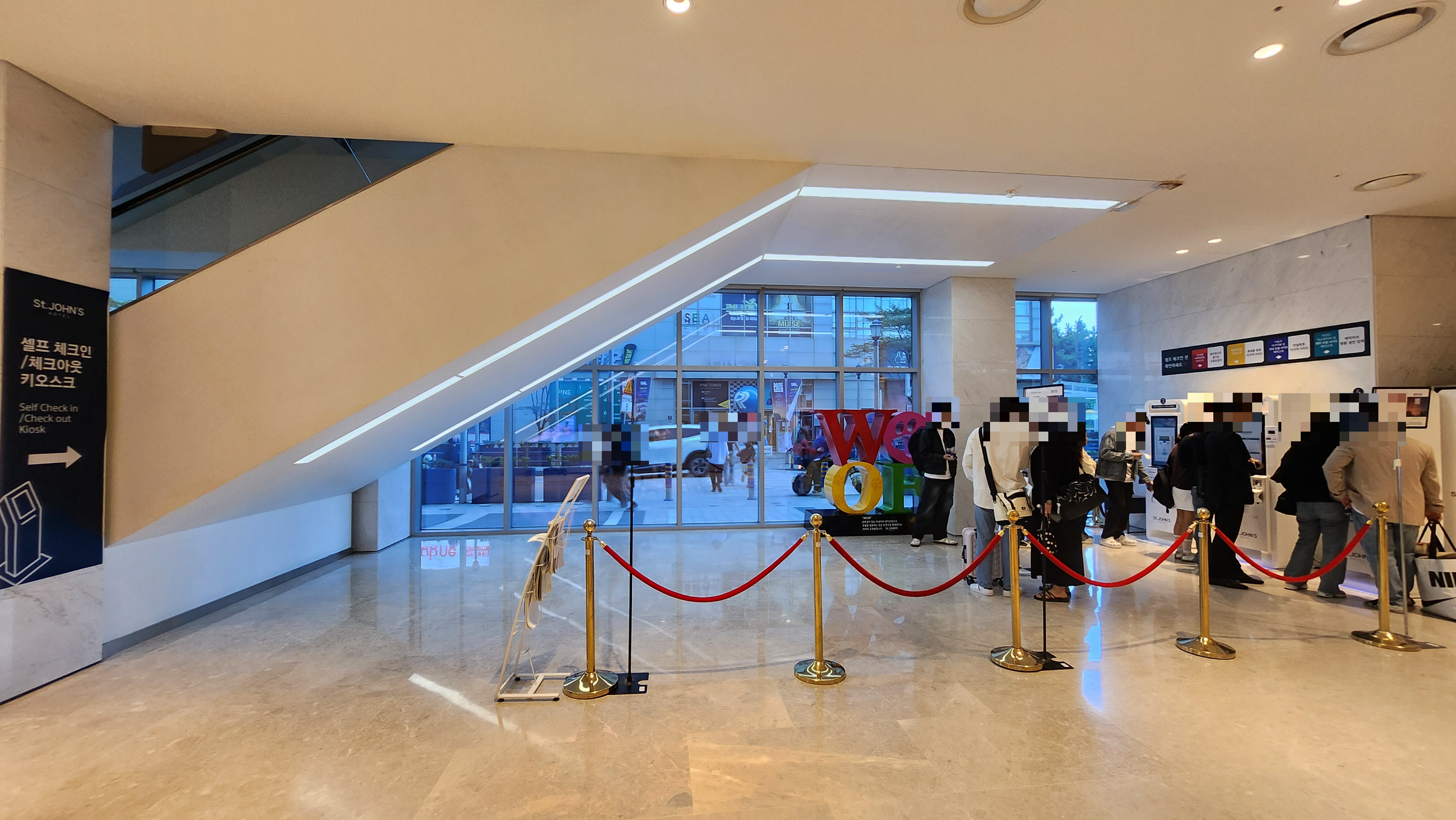 세인트존스호텔의 경우 체크인이 15:00 부터 가능한데, 시간 맞춰 오시면 아래 사진처럼 많은 사람들이 있으니 일정이 촉박하신 분들은 참고하여 체크인을 해야 할 것 같습니다. 저는 15:00 ~ 16:00 경에 방문하여 대기번호를 받고 체크인 하다 보니 약 30 ~ 40분 정도 소요됐습니다.