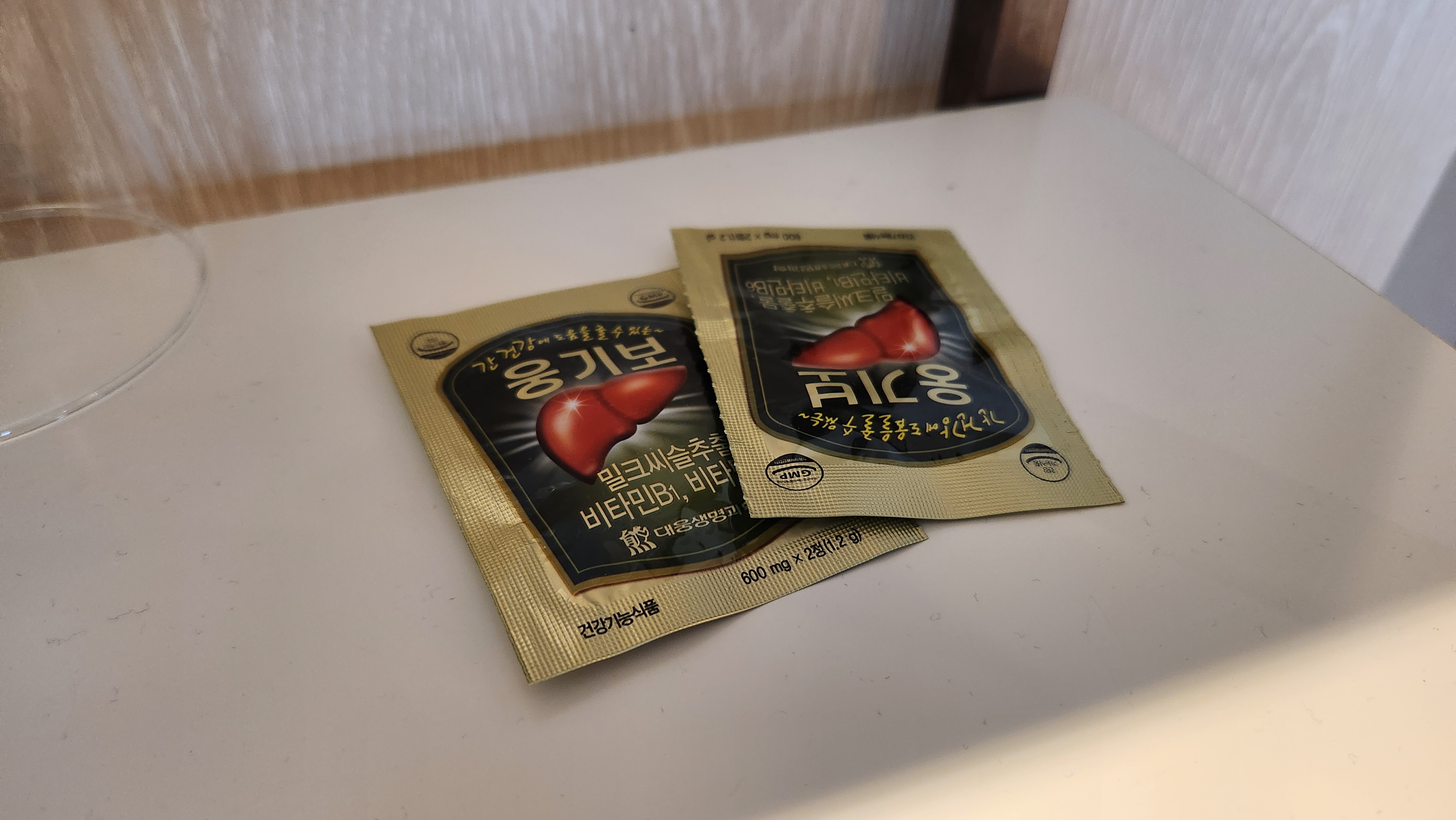 미니바의 경우 물과 웅기보만 있었습니다. 신기하게 건강기능식품을 비치해두네요 ㅎㅎ