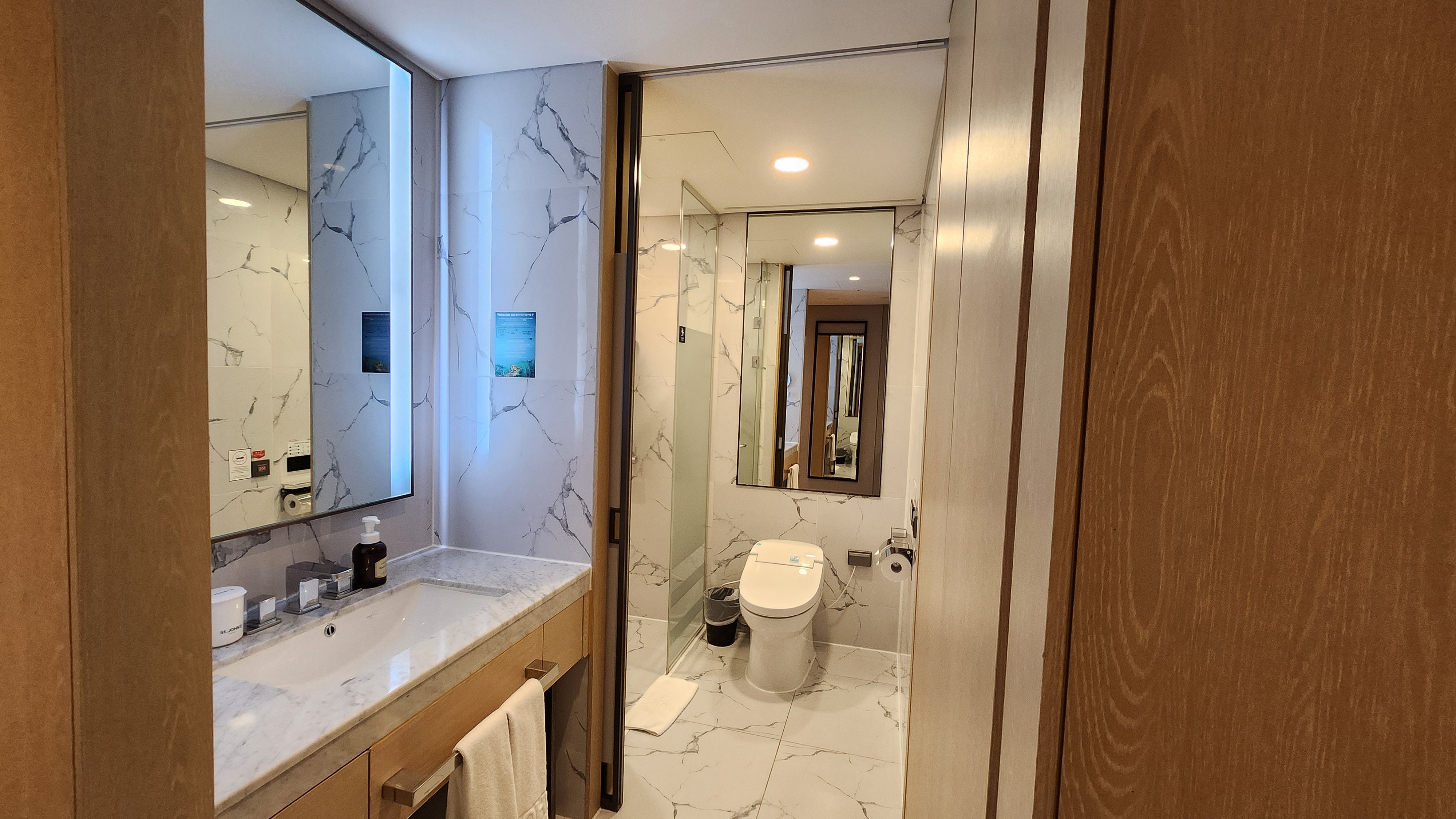 화장실 및 욕실은 전반적으로 깔끔하되, 욕조가 없는 점은 조금 아쉬운 포인트인 것 같습니다.