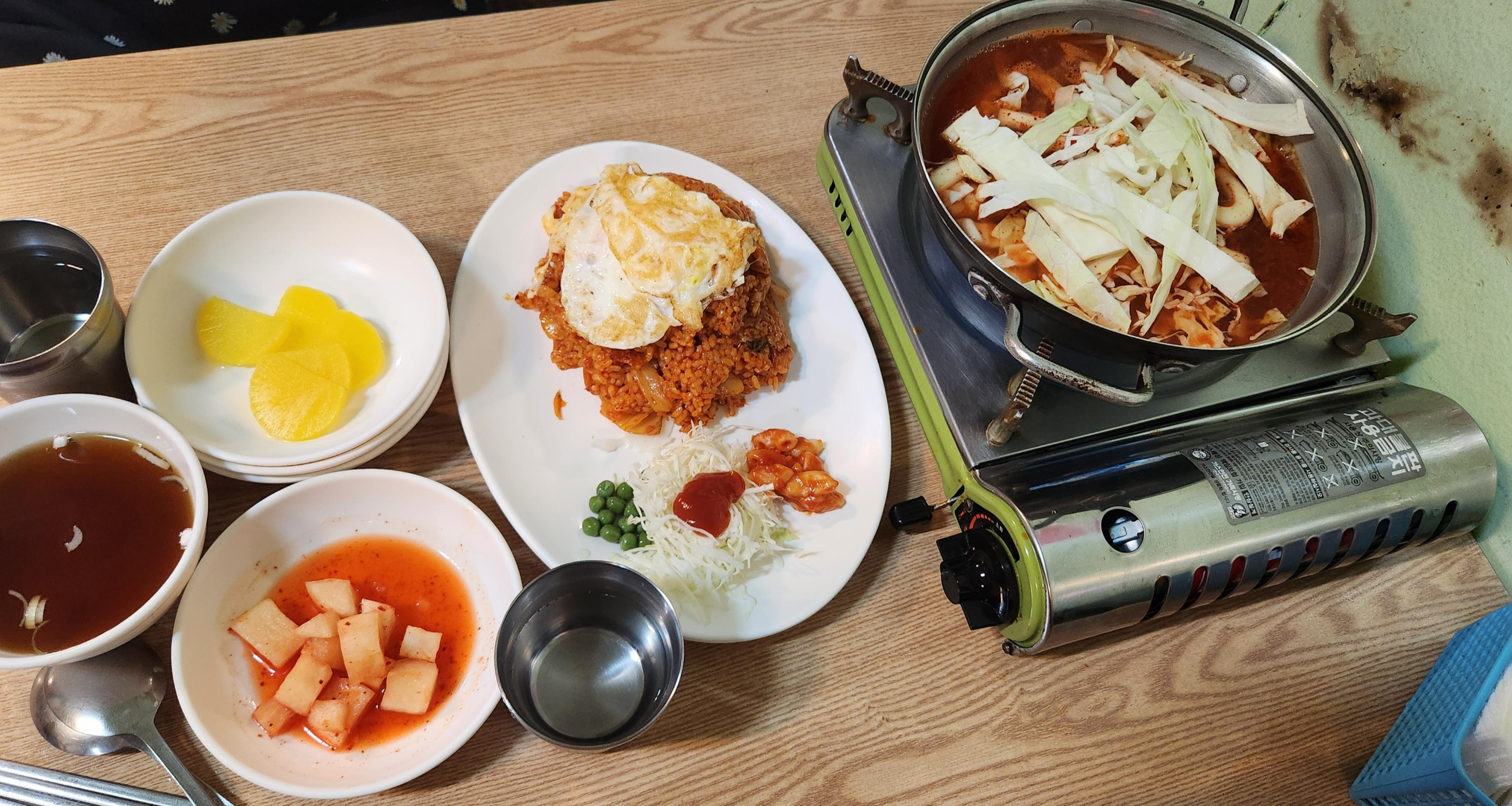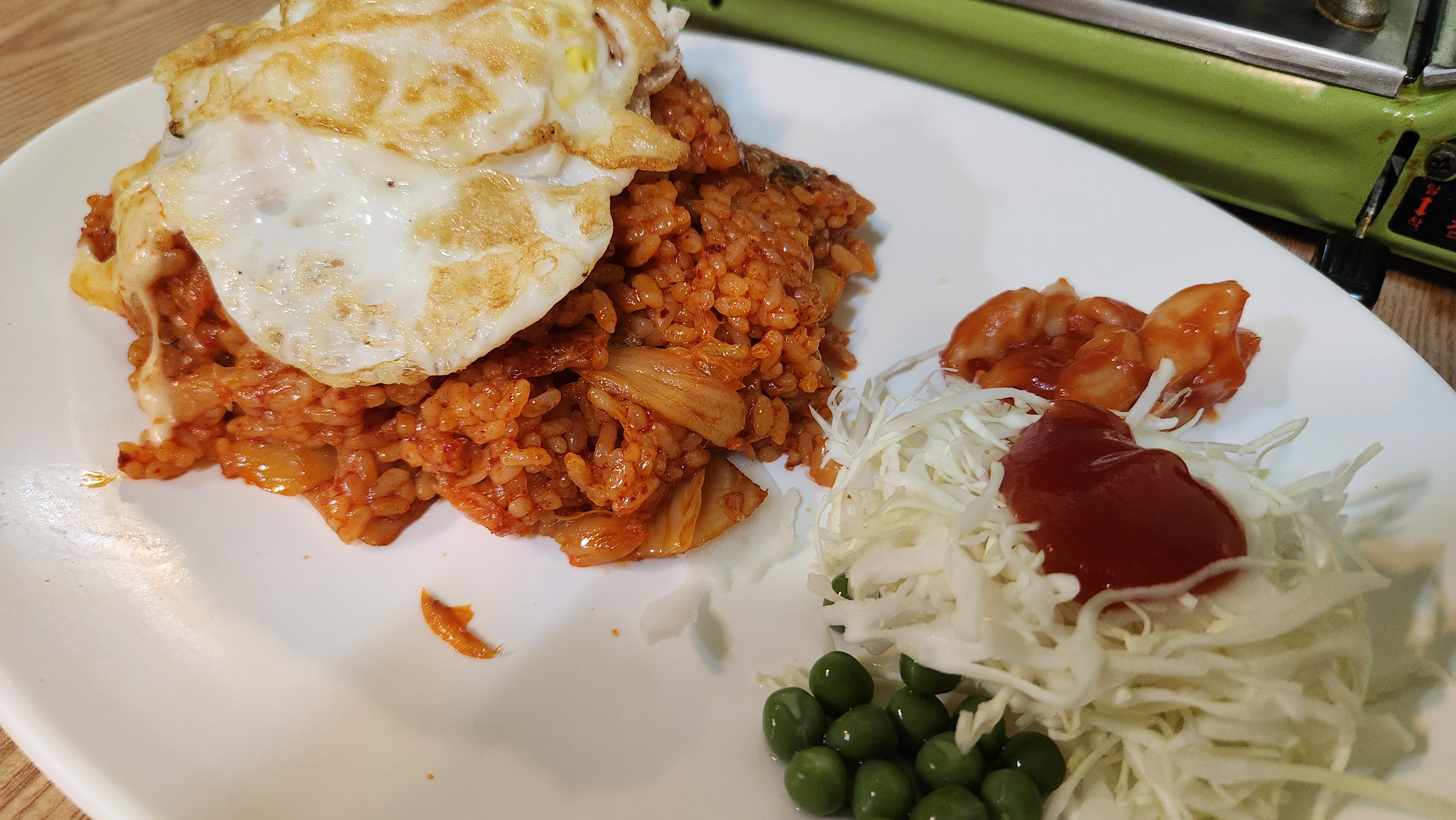 저희는 떡볶이를 끓이는 동안 김치볶음밥을 먼저 먹어보았습니다.