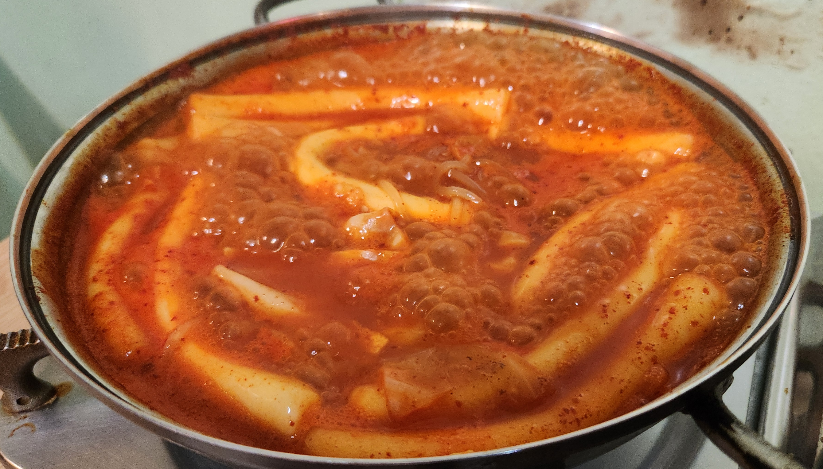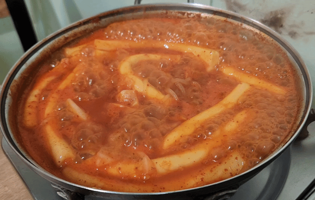 김치볶음밥을 먹는 동안 드디어 떡볶이도 점점 맛있는 비쥬얼이 되어가네요.