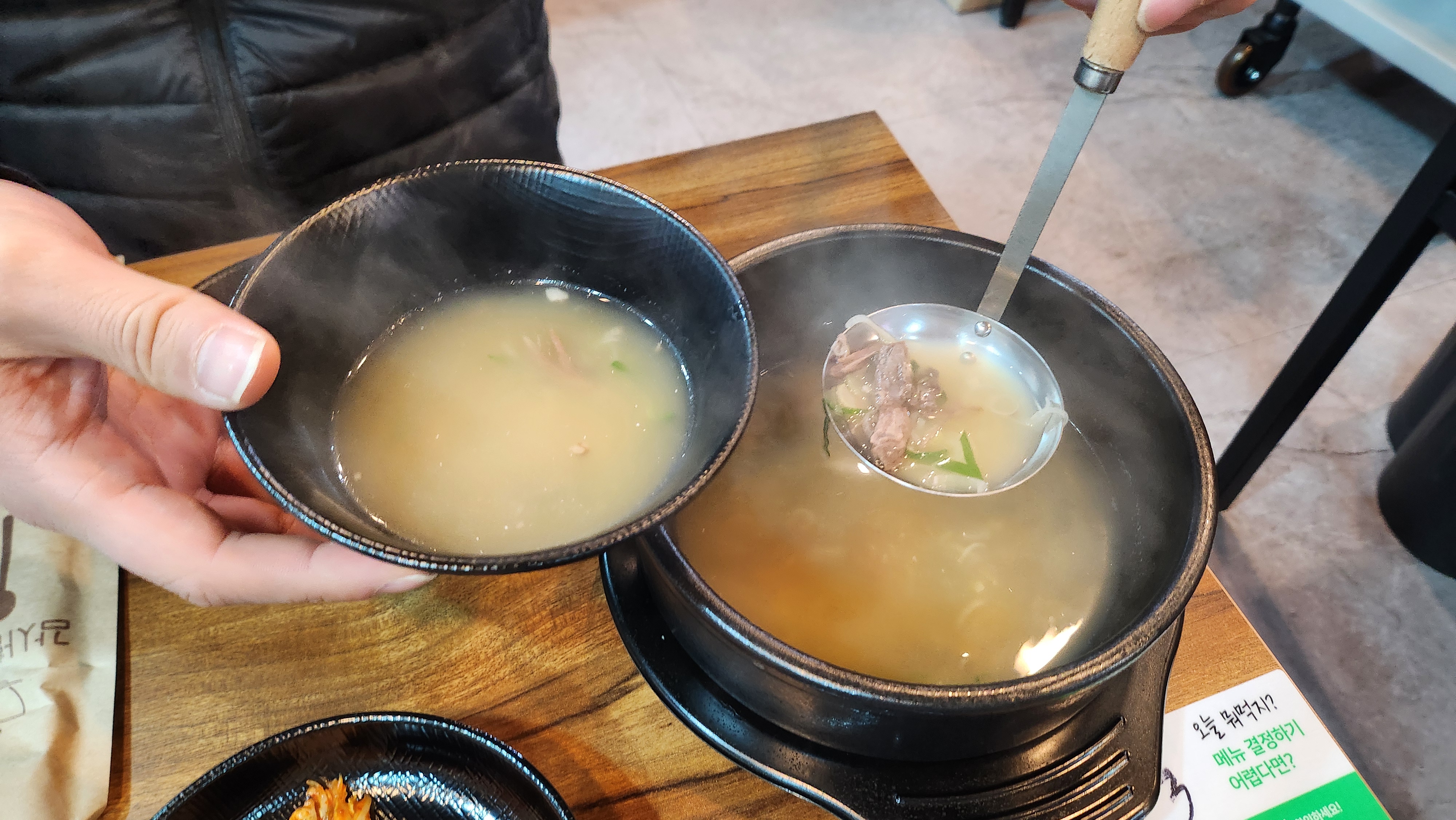 메인 메뉴가 나오기 전부터 기본 찬들이 나오는데, 고기국물과 계란프라이는 감동이네요.