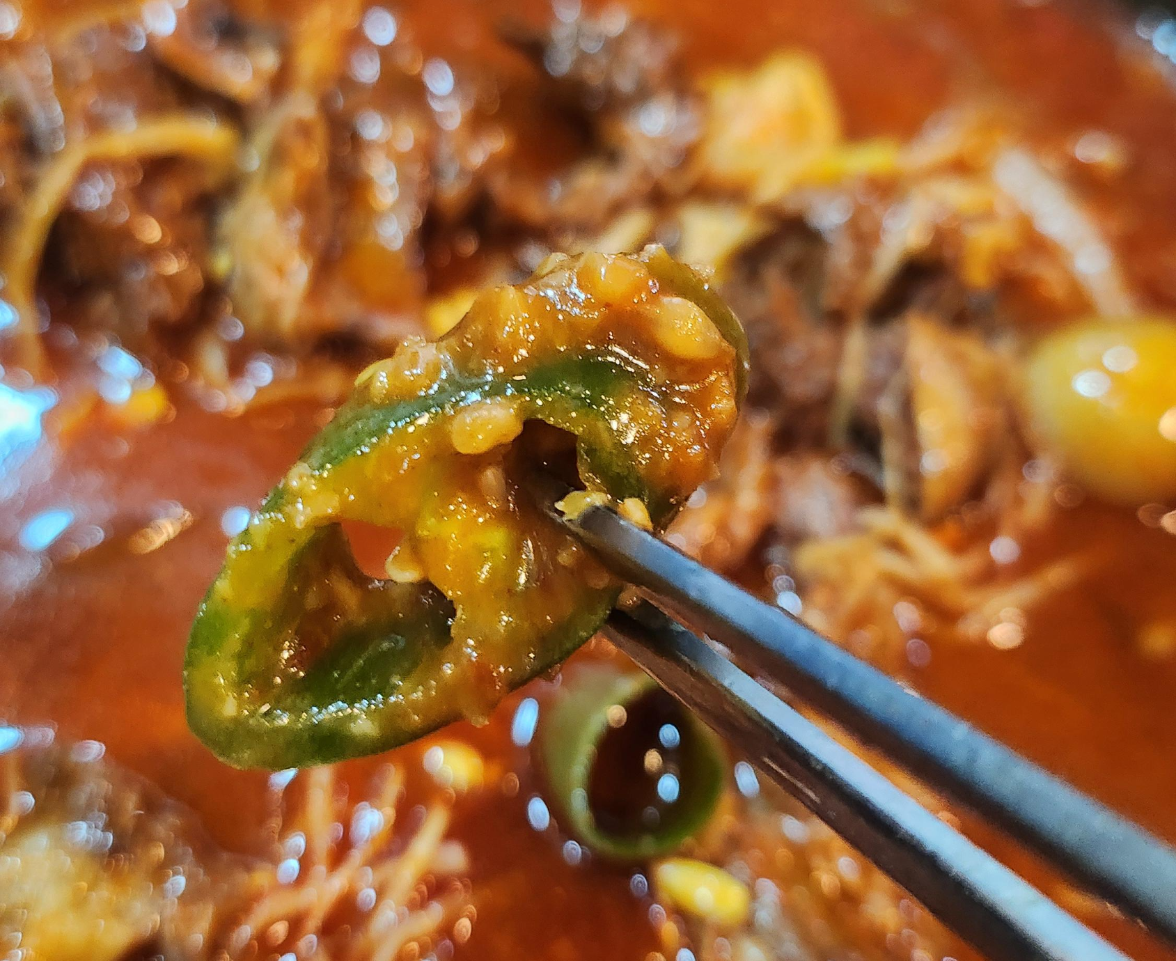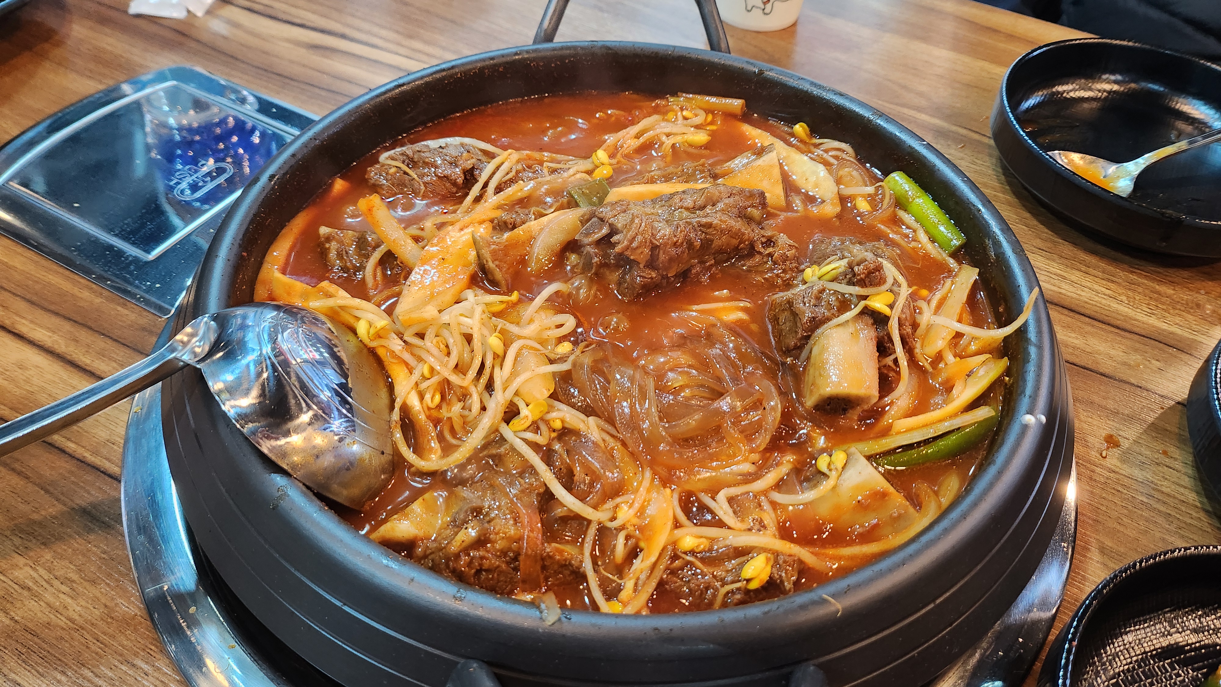 둘이서 매운 소갈비찜 小 (40,000원) 하나만으로도 어느 정도 배가 차서 볶음밥은 먹고 싶었는데, 배가 불러서 다음 기회로 미뤘네요. 이곳의 매운 소갈비찜은 입에 넣자마자 매운맛이 확 느껴지는 강렬한 느낌보다는 먹다 보면 적당하게 매운맛이 느껴지는 곳입니다. 많이 맵지는 않고, 비교하자면 신라면? 정도의 맵기라고 보면 될 것 같네요. 그러면서도 감칠맛이 있는지 마지막까지 맛있게 먹게 되는 맛집이었습니다.