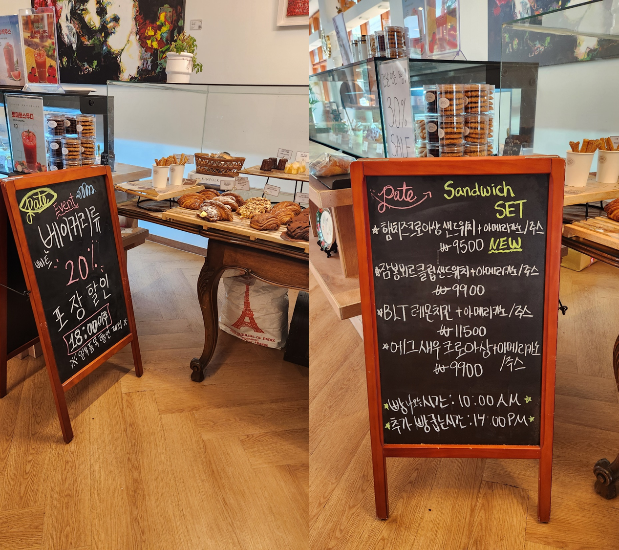 이곳은 베이커리 카페로 다양한 빵과 음료를 팔고 있었는데, 매장 이용은 1인 1음료가 필수인 곳입니다.