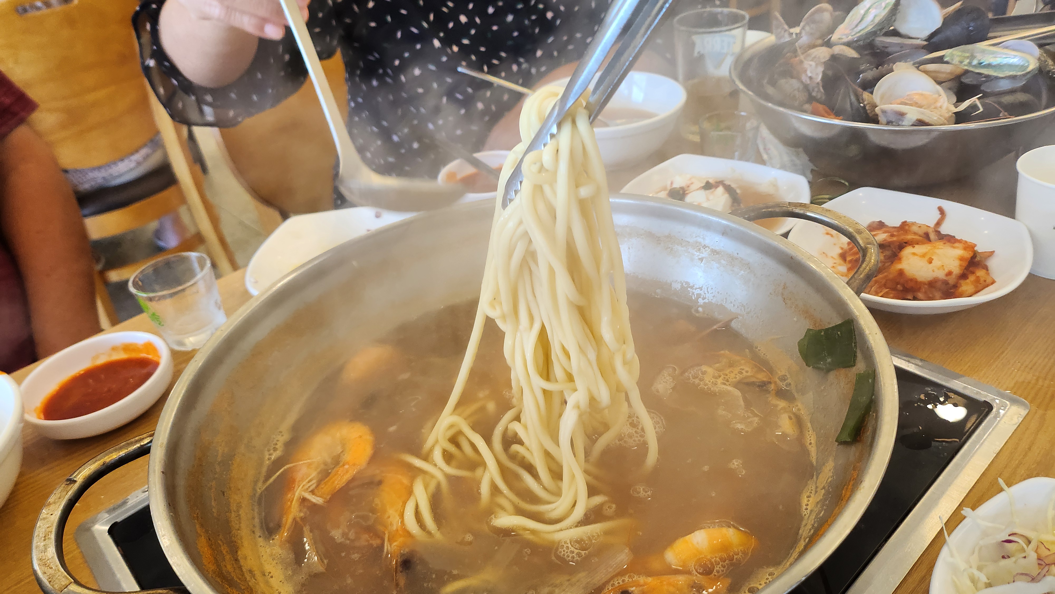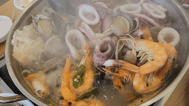 해물을 다 건저 먹은 후에는 아래 칼국수면을 넣어 2차로 칼국수를 먹으면 됩니다.