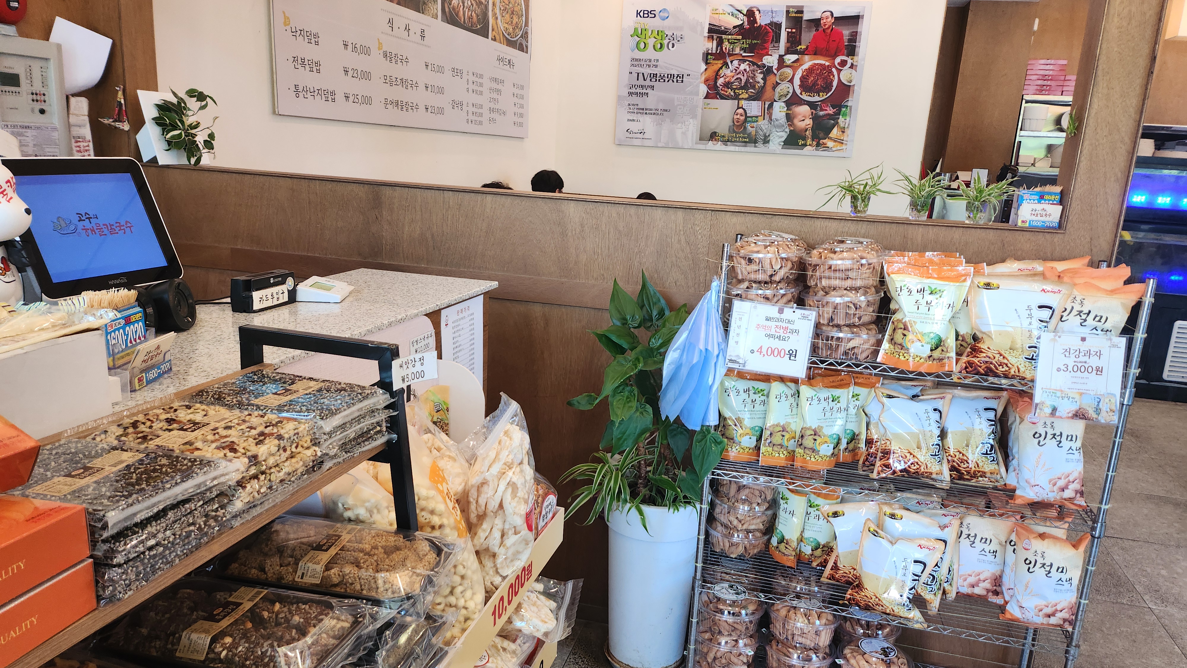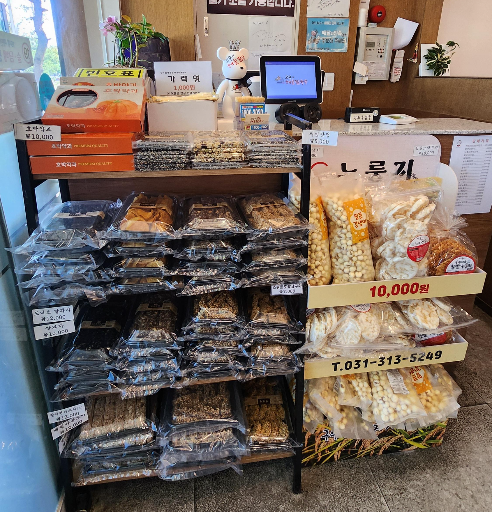 계산대 주변에는 스낵류와 선물류들을 팔고 있었고, 식후에 먹을 커피와 식혜도 제공하고 있었습니다.