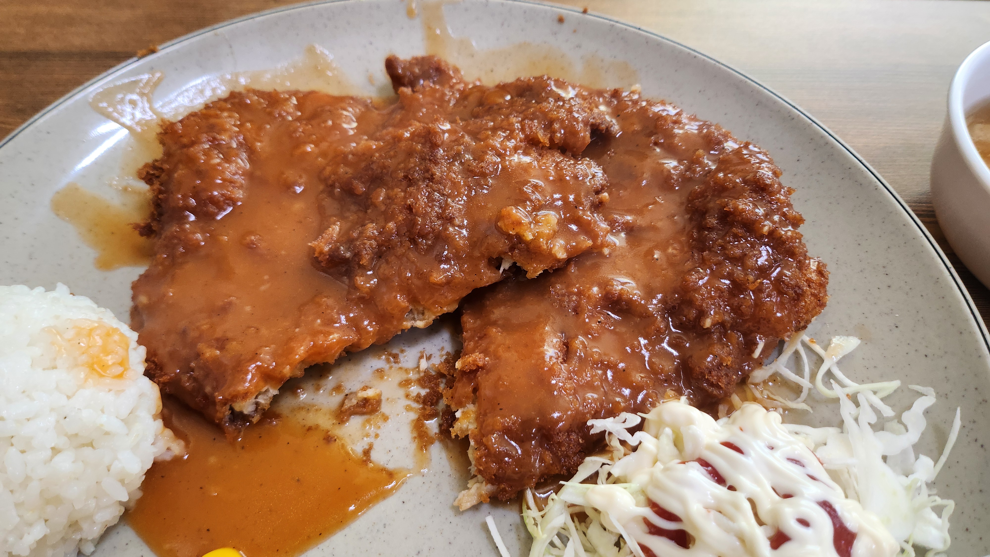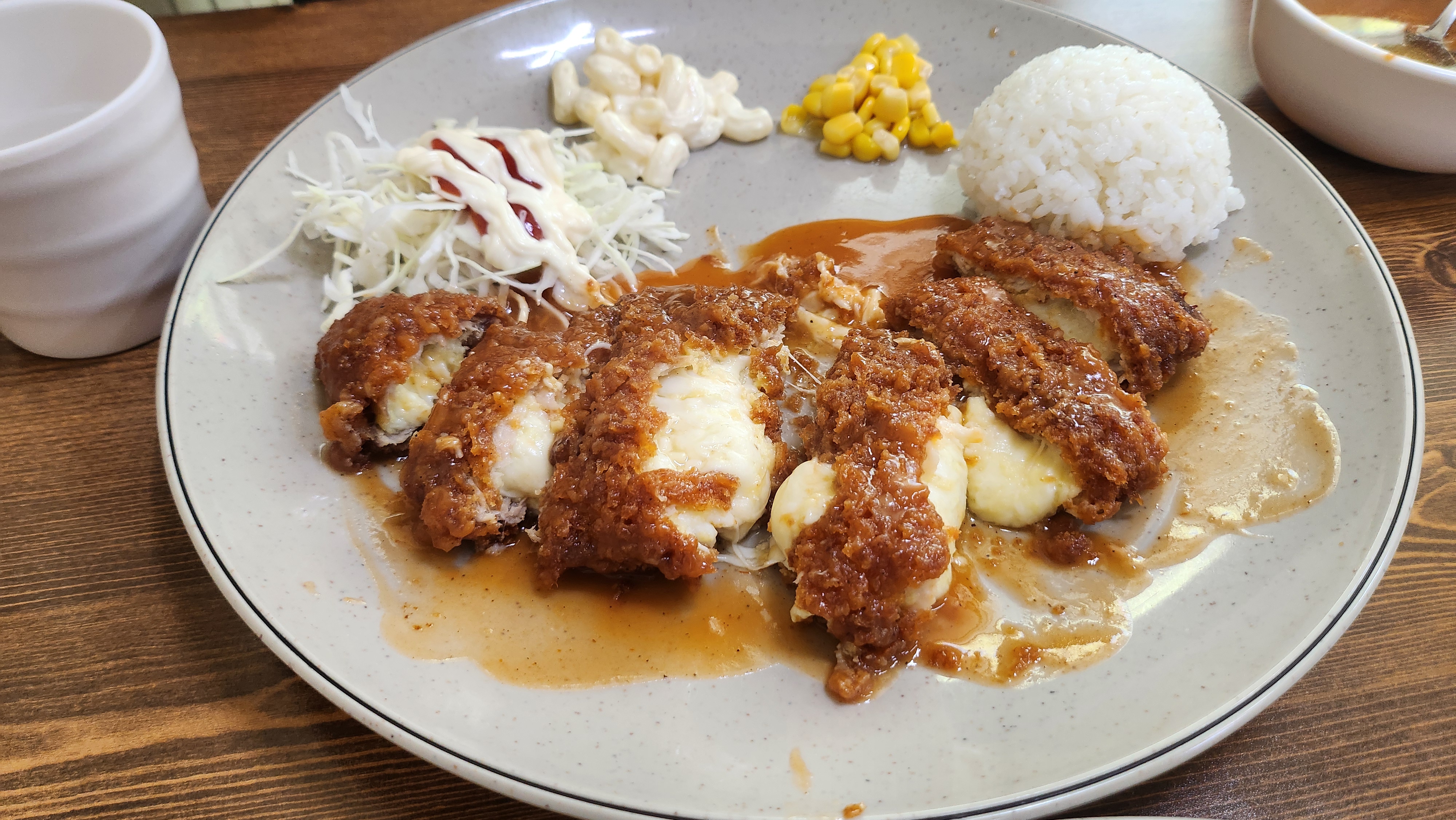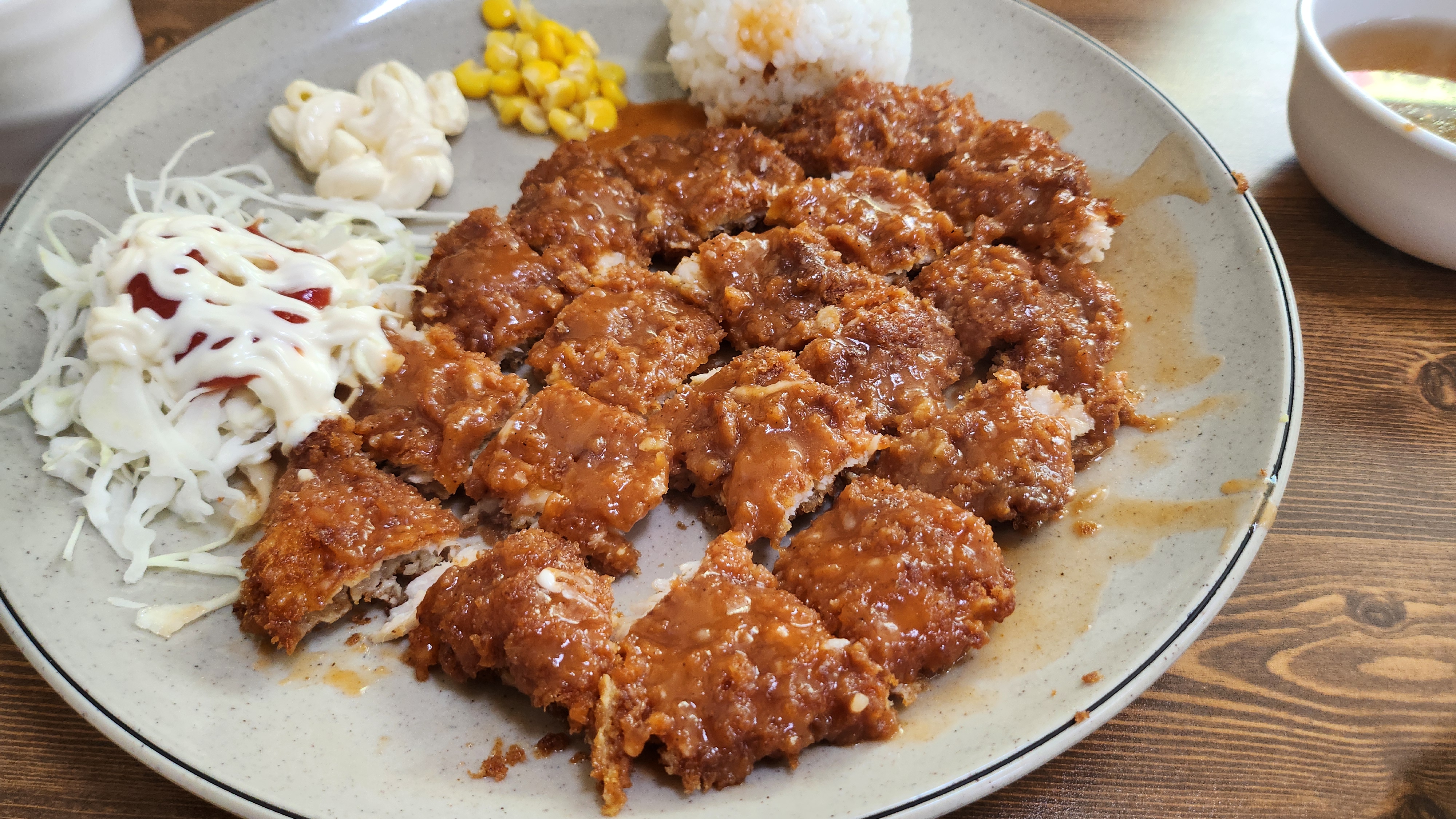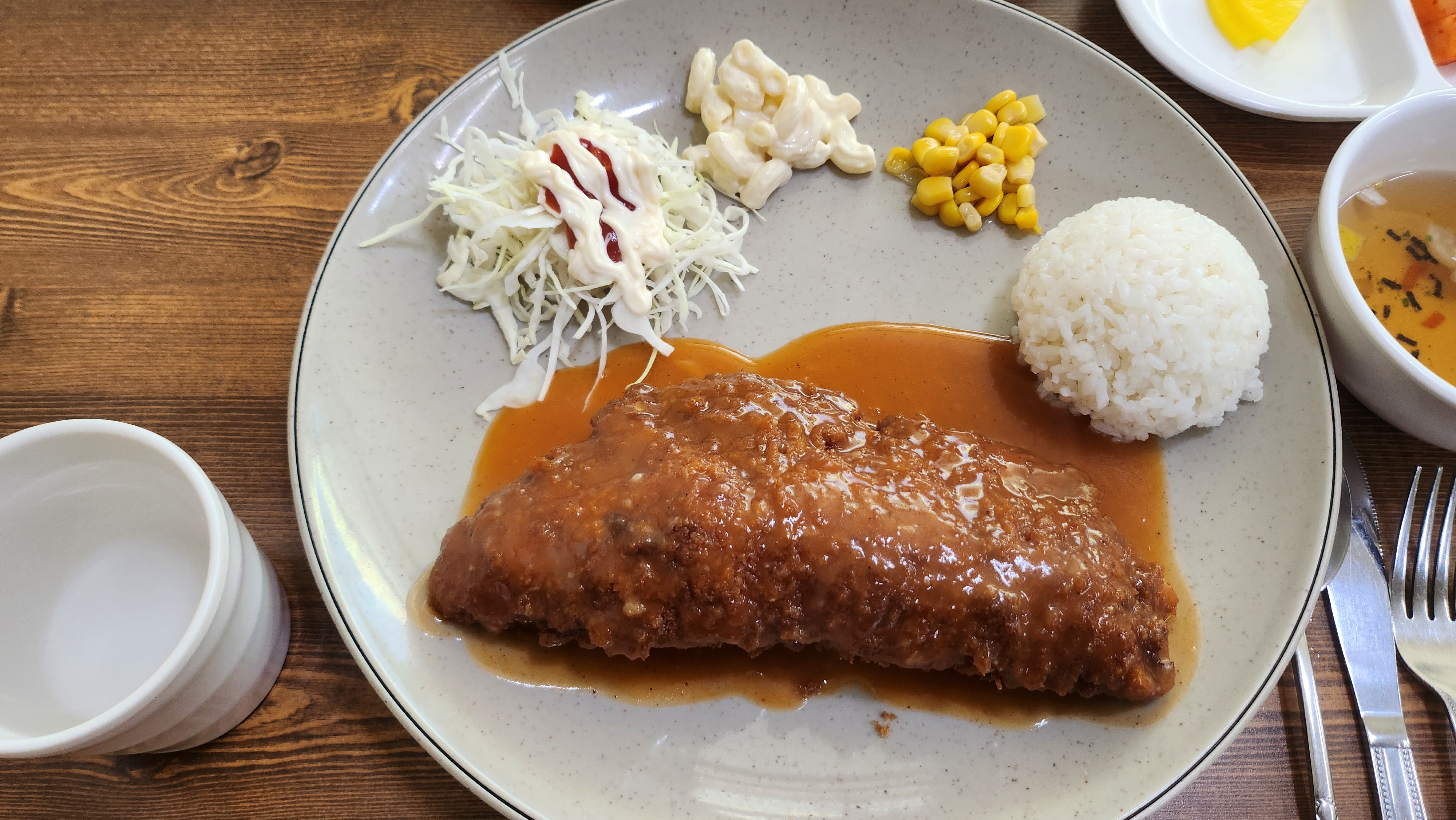 다음은 치즈돈까스 입니다. 처음 인상은 투박하고 크진 않아서 다 먹어도 배부를까 싶었는데, 안에 치즈가 가득했고 배불리 먹을 수 있었네요. 치즈도 잘 늘어나고 맛도 좋아서 잘 먹었던 것 같습니다.