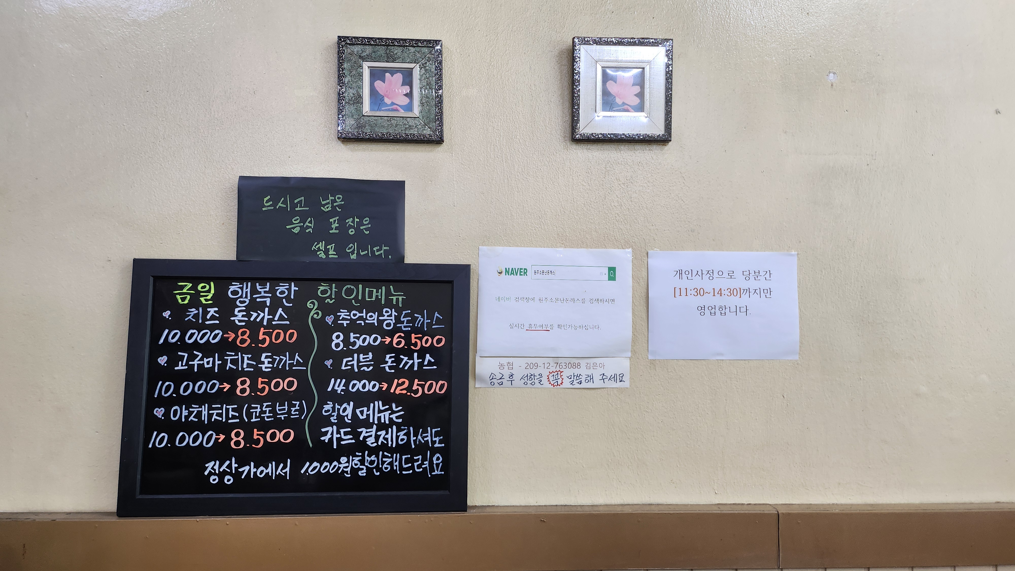 원주 봉산동에 있는 소문난돈까스는 주변에 총각순대, 뼈대있는짬뽕, 기와뜰 등 다양한 맛집들이 있어서 저장만 해두고 다른 메뉴로만 방문했다가 이번에 돈까스가 먹고 싶어서 방문하게 되었네요.