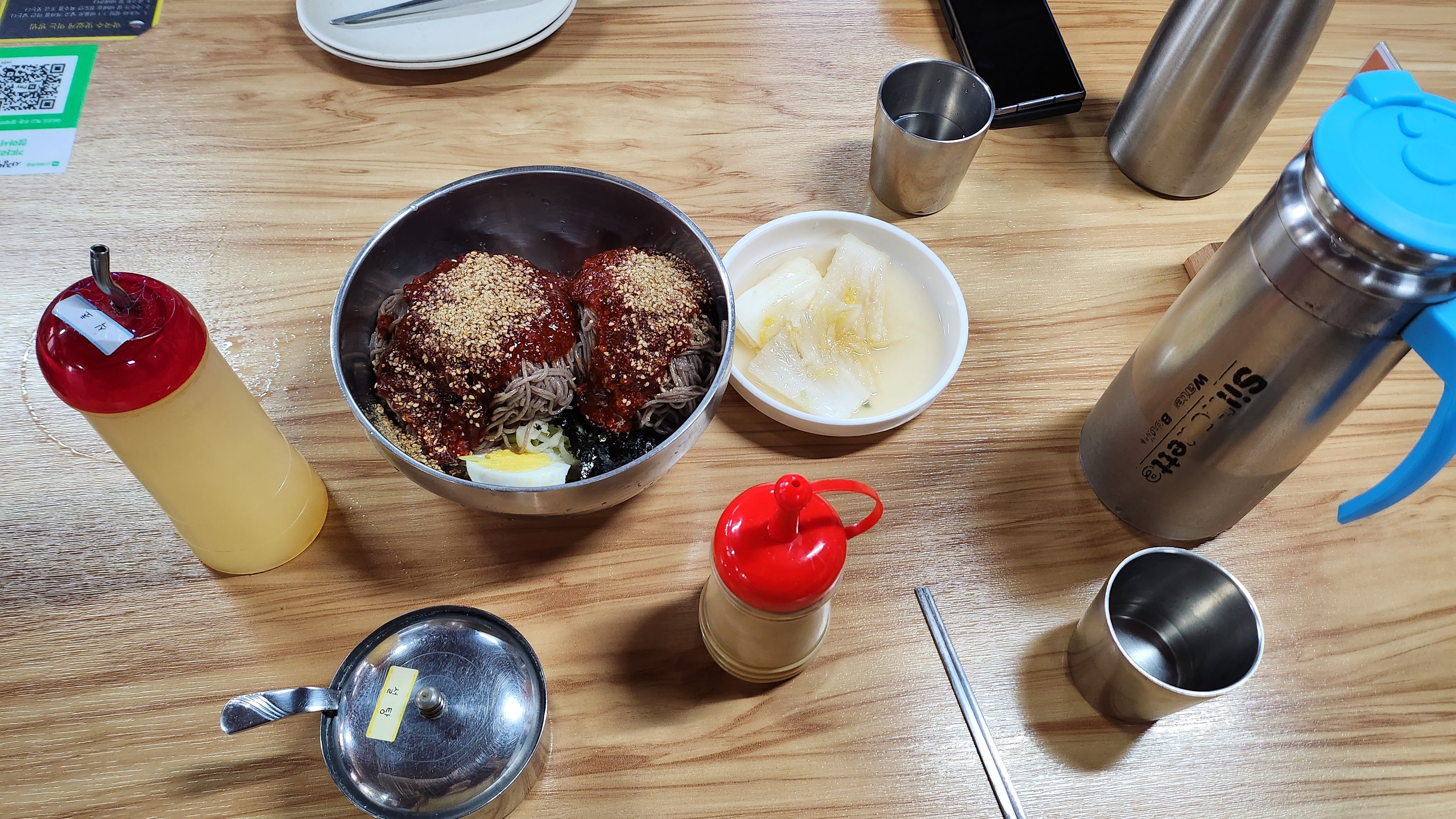 가격도 착하고, 양도 푸짐해서 기분 좋게 한끼 먹었으며, 막국수는 비빔막국수으로도 맛보고 물막국수로도 맛볼 수 있어서 좋았습니다. 빈대떡도 맛있게 먹었으나, 이곳만의 특색이 있지는 않고 어디서도 맛볼 수 있는 무난한 맛이었던 것 같습니다. 그래도 가격 자체가 착하기 때문에 같이 방문한 인원이 많다면 사이드메뉴로 시켜볼만 할 것 같습니다.