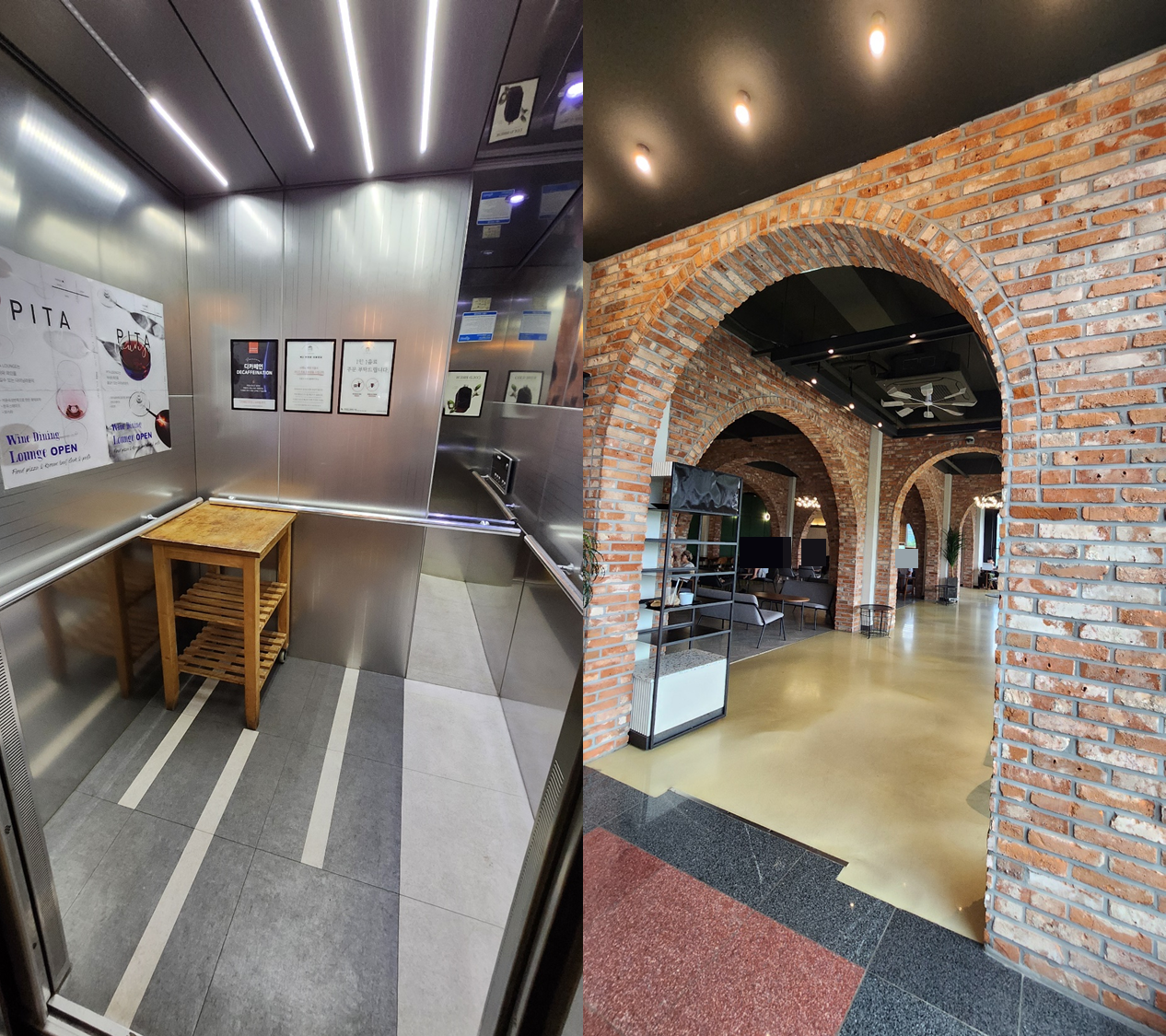 엘리베이터 내 테이블이 있는 점도 배려가 돋보이네요.