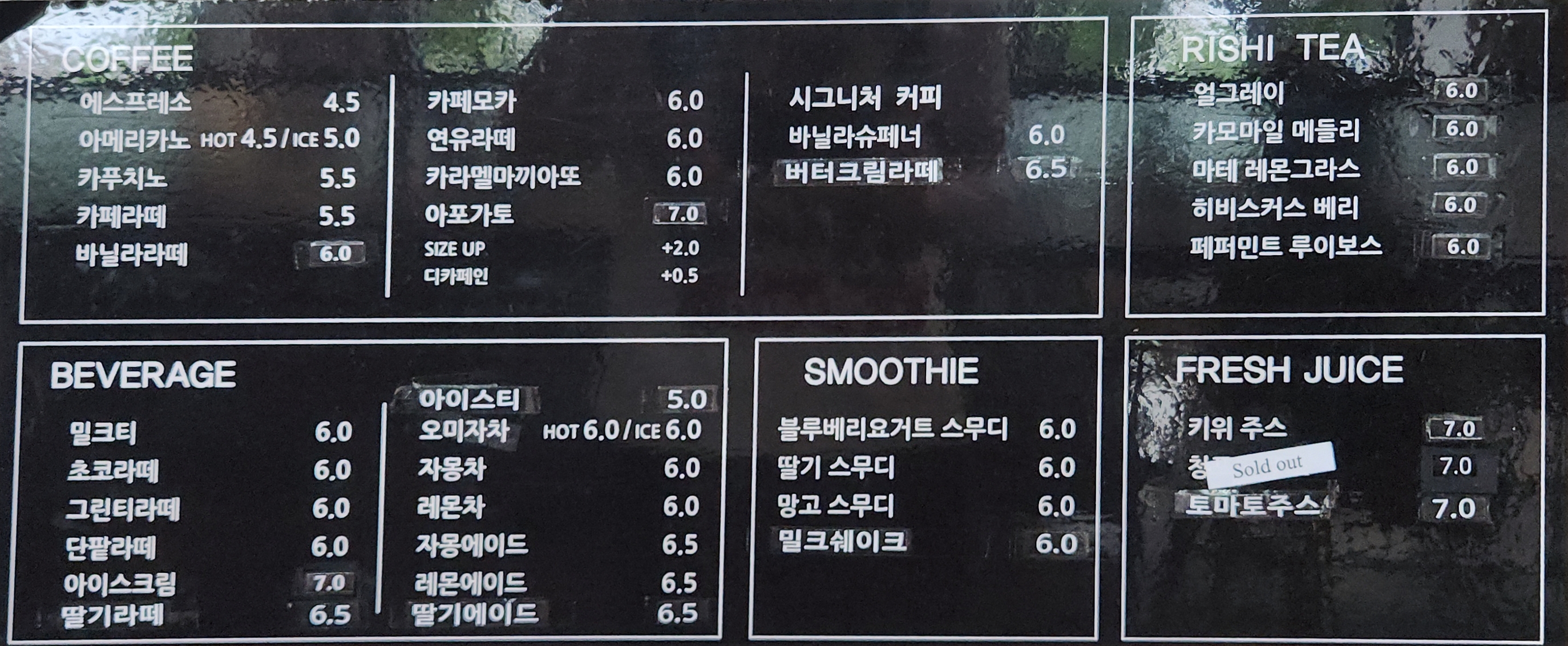 아메리카노도 산미감도 약간 있고 맛있는 커피였고, 오미자차도 인공적인 단맛보다는 은은한 단맛으로 전반적으로 맛있었습니다.