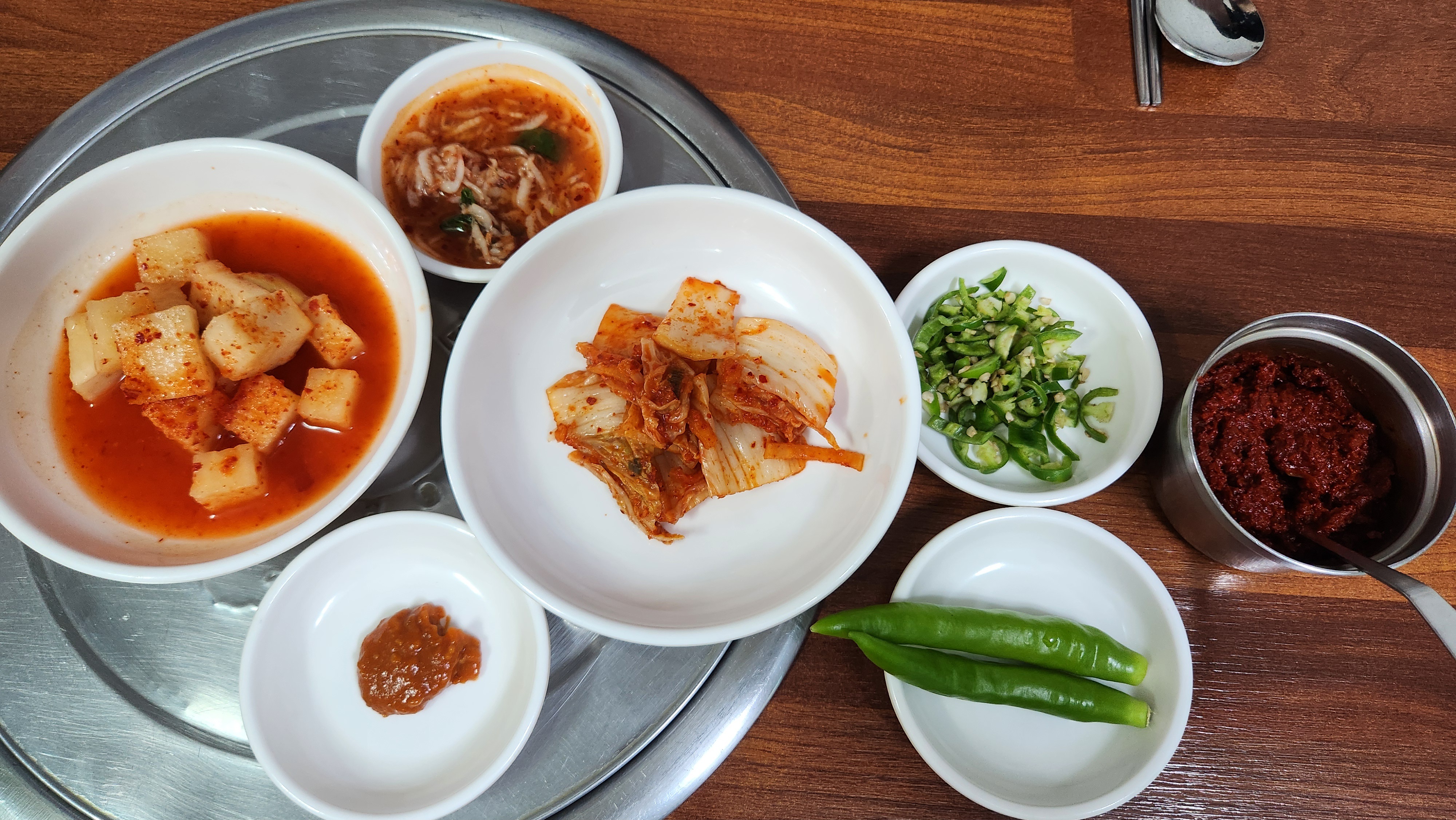 기본적으로 김치 등 밑반찬을 내어주시며, 앞치마 및 추가반찬은 셀프로 가져오시면 됩니다.