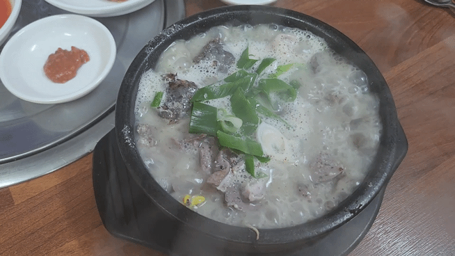 국물은 감칠맛이 엄청나게 느껴지기보다는 간이 세지 않은 편으로 다진 양념이나 고추, 새우젓 등 취향에 맞게 간을 맞춰 먹는 곳이고, 콩나물이 들어간 건 잘 못 본 거 같은데 들어가 있어서 신기했네요. 그리고 고기가 전반적으로 잡내 하나 없는 편이며, 부드러워서 먹기에 부담스럽지도 않아서 맛있게 먹었습니다.